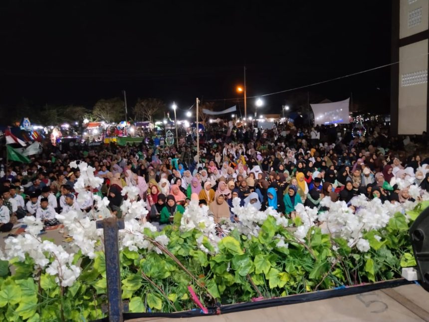 Tumpah ruah pengunjung dan peserta perkemahan memadati halaman masjid Adil Muhammad Bintang sembilan STAI Brebes di perumahan Amarta Desa Pesantunan Kecamatan Wanasari pada malam Ma’arif bersholawat dan Safari Maulid dalam rangka memperingati Harlah LP Ma’arif NU ke -95 tahun 2024.